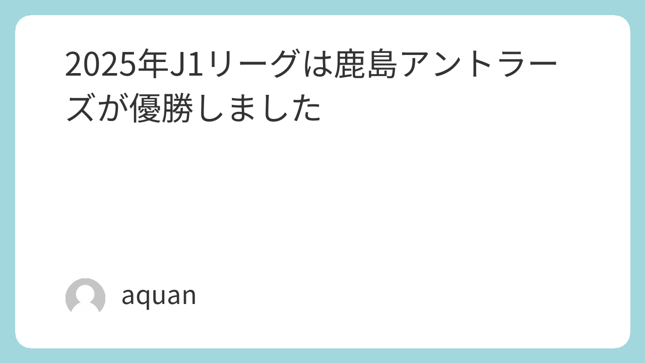 2025年のJリーグは前週のJ2水戸ホーリーホックの優勝に続き、鹿島アントラーズがJ1リーグで優勝しました。